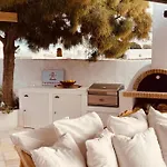 De 2-slaapkamer Romeo And Julio Summer House Mykonos Town villa bevindt zich binnen 2 km afstand van Klooster van Panagia Tourliani en beschikt over een terras met uitzicht op het zwembad.